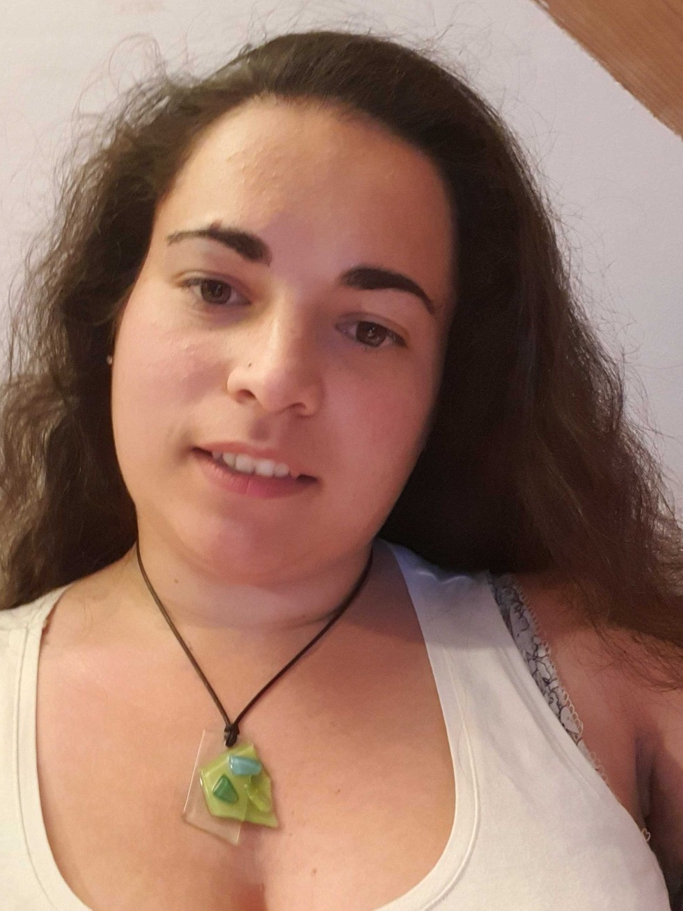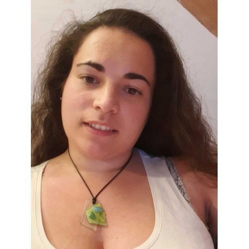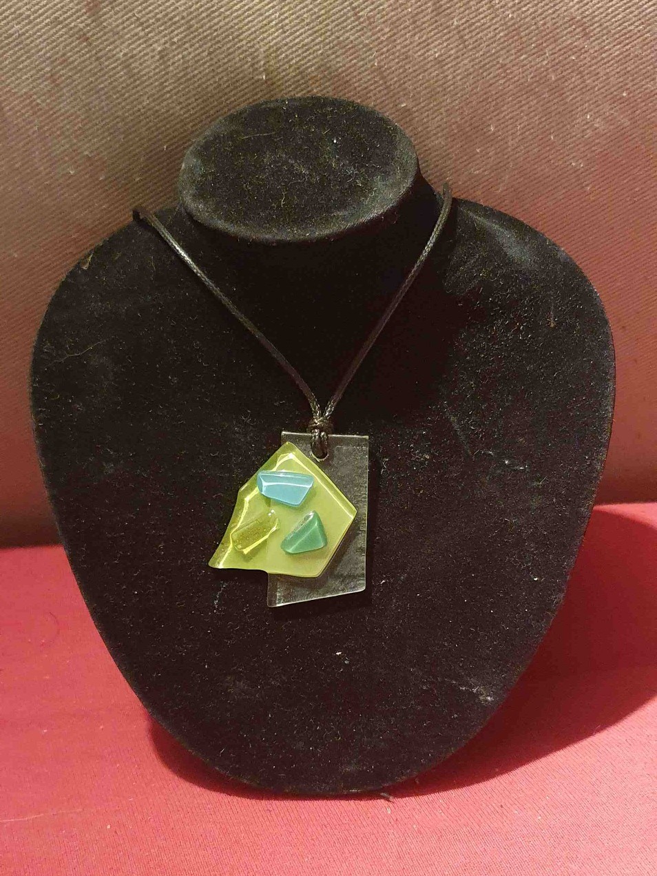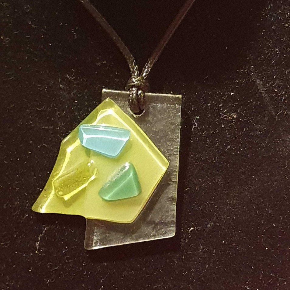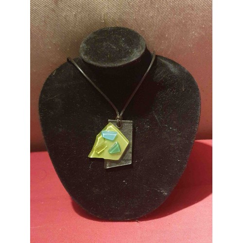 Collier en fusing de couleur vert polychrome et bleu
