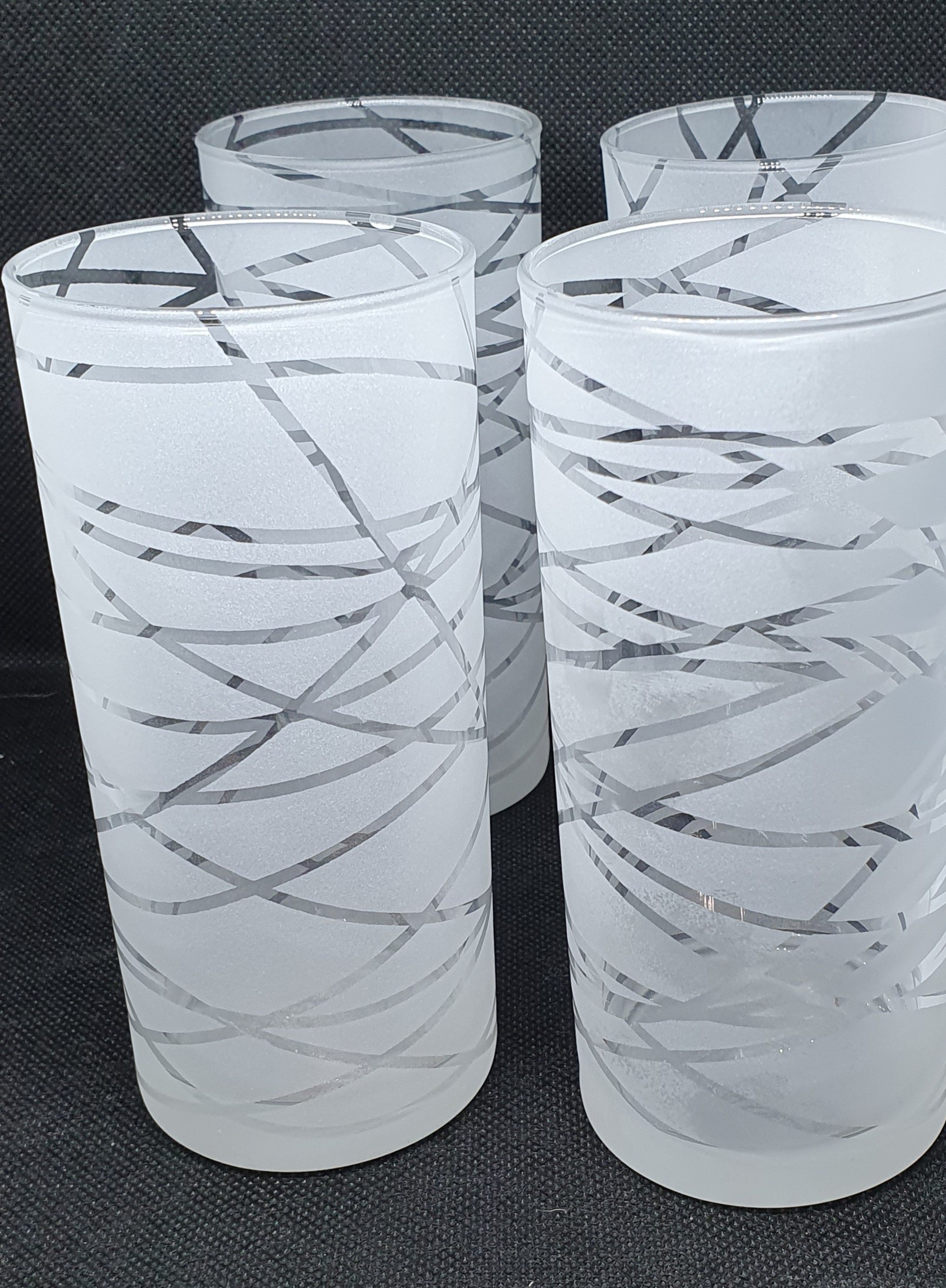 verre sablé sur toute la surface et décorée de bande.