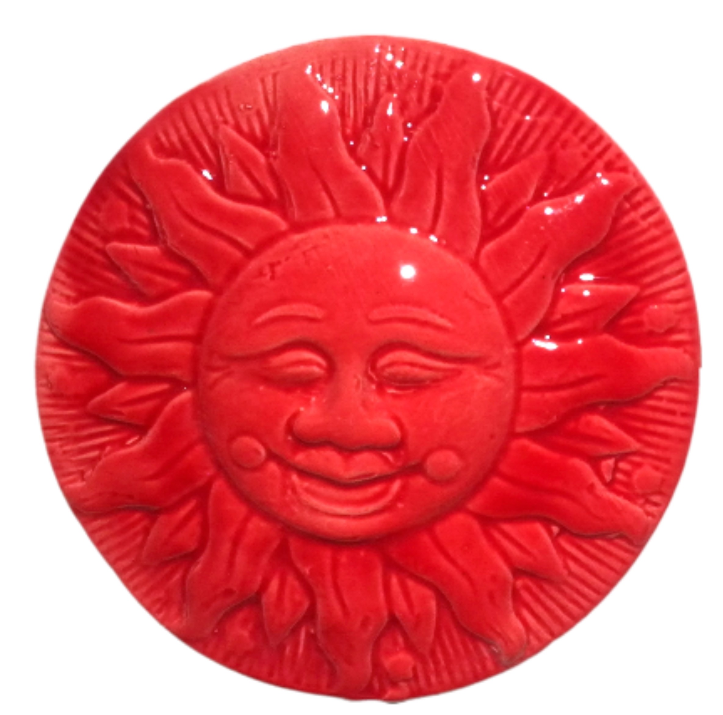 De matiere argile faïence et de couleur émail (rouge, bleu, vert foncé...)